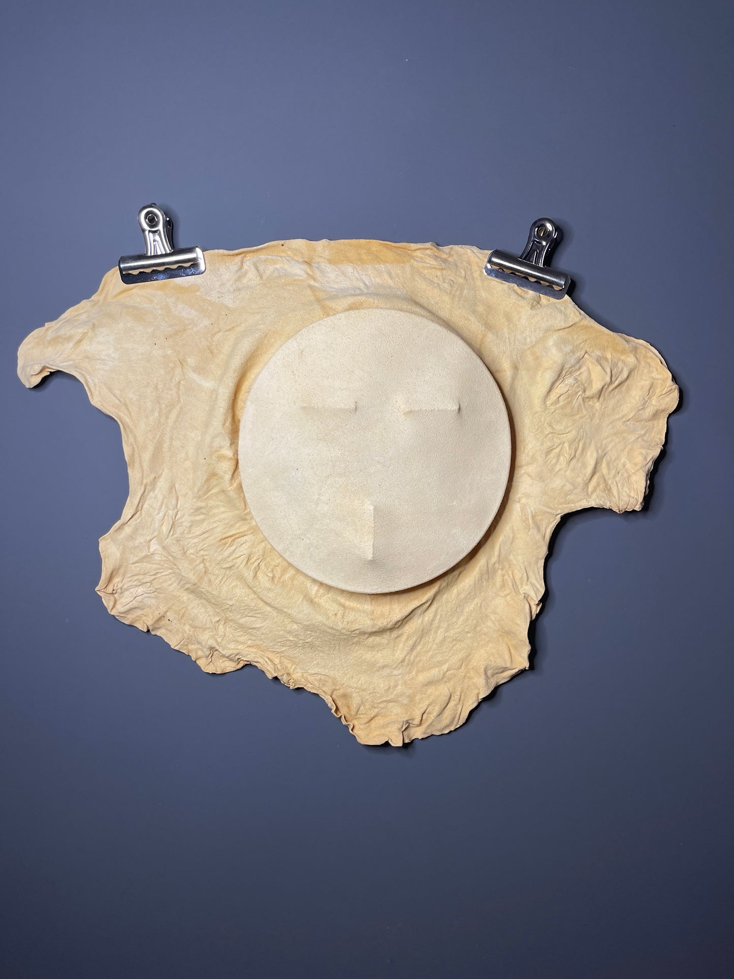 This mask, crafted from premium chamois leather, originates from Dirk’s enduring fascination with the material since his youth. In an era of growing environmental challenges and global tensions, Dirk reflected on the role of art during crises. This led to the creation of masks that, while highly functional, embody flexibility and resilience—both in their form and their symbolic significance. Each piece is unique, hand-moulded with precision using Dirk’s expert shoemaking techniques, ensuring that every mask carries its own distinct character. However, as with any fine material, contact with water will forever alter its function, transforming the object from art into something more utilitarian.