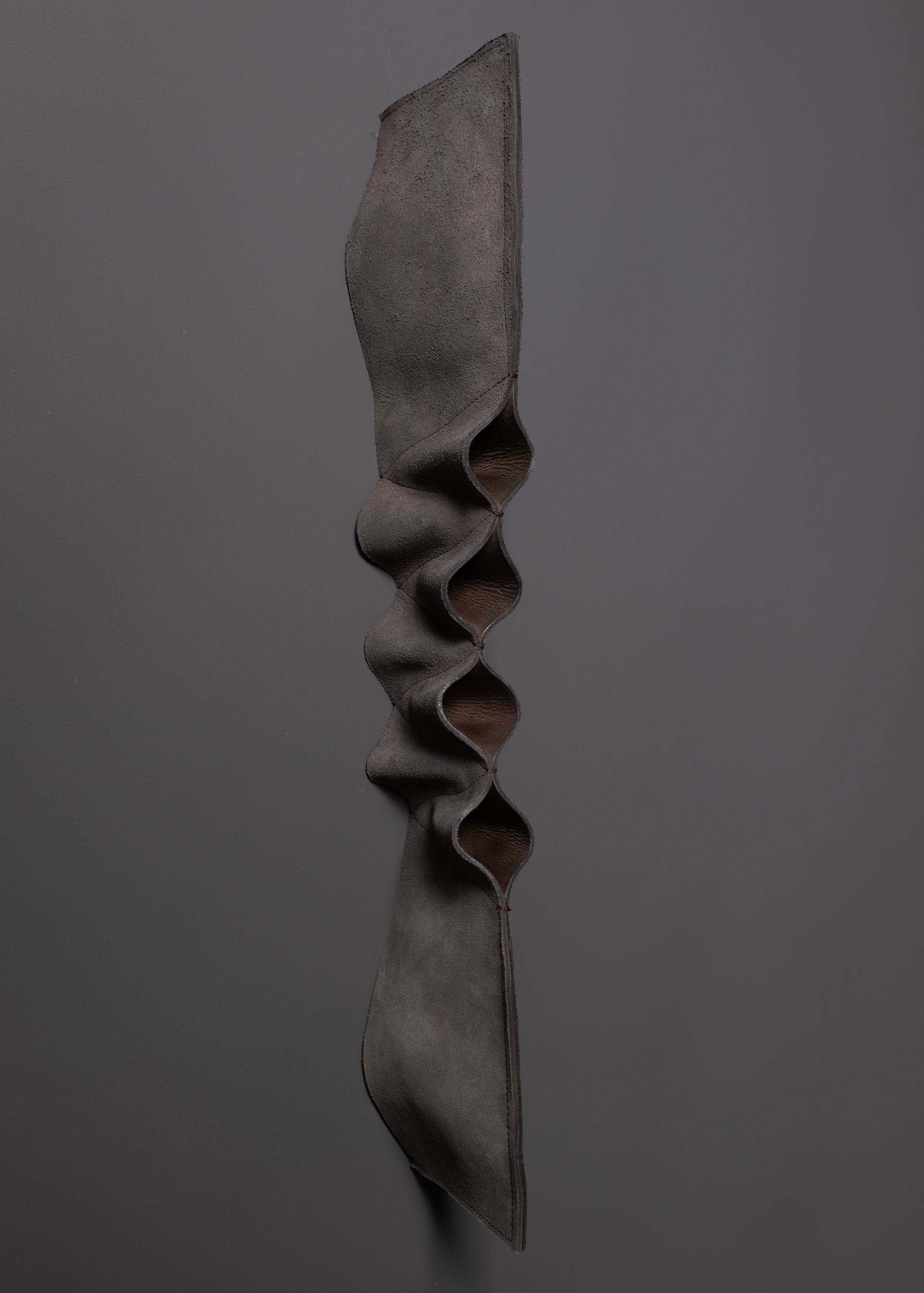 Made from naturally tanned leather, Mother’s Pulse echoes the hidden networks that connect all life. Its flowing, vertical form follows a natural rhythm — a steady pulse drawn from the earth itself.