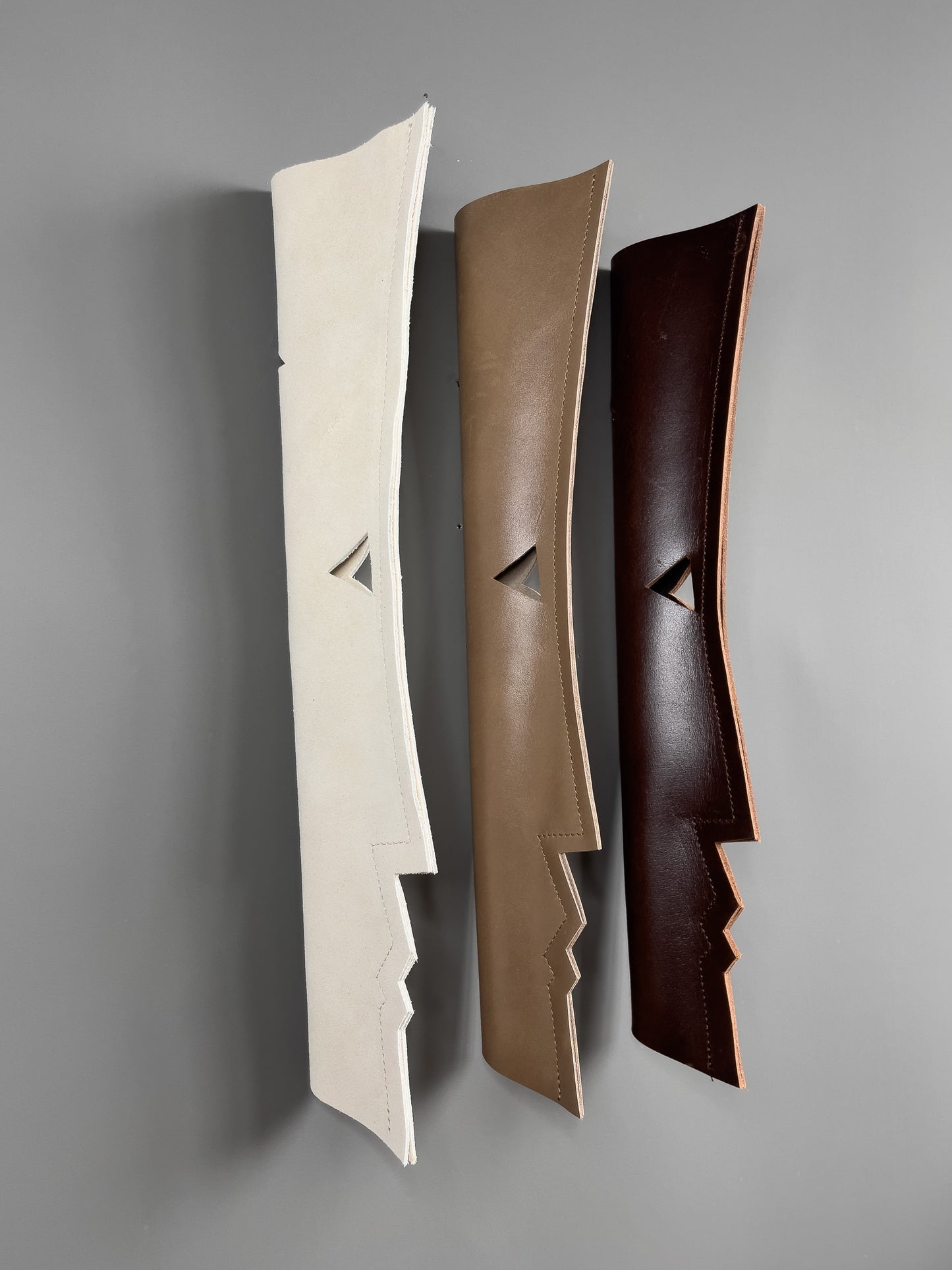 This Silhouette Mask, made from leather , reveals facial expressions through its contour. This Mask was inspired by the face masks Dirk created during the pandemic. With a background in shoe and bag making, Dirk has applied his refined techniques to create this piece.