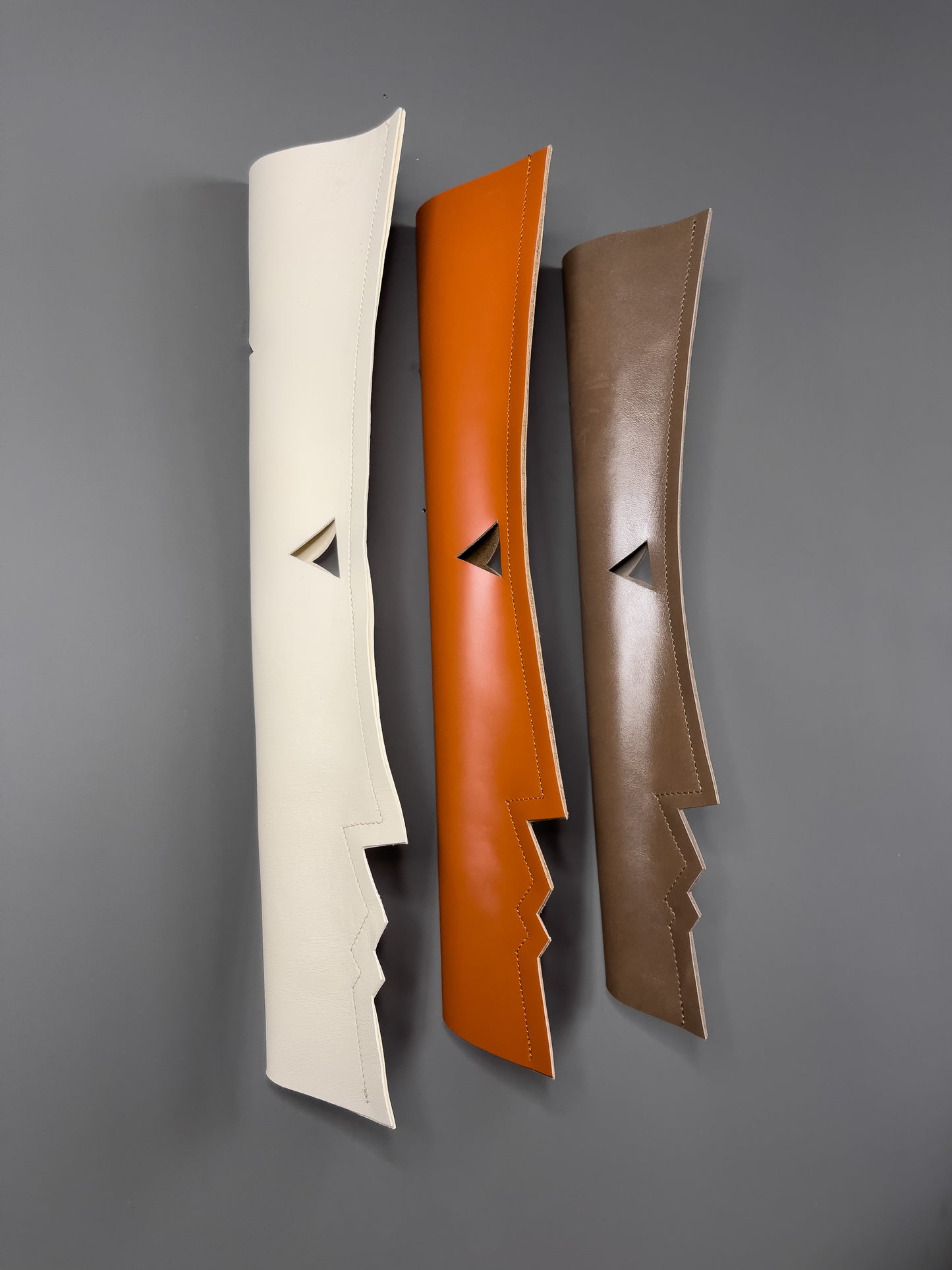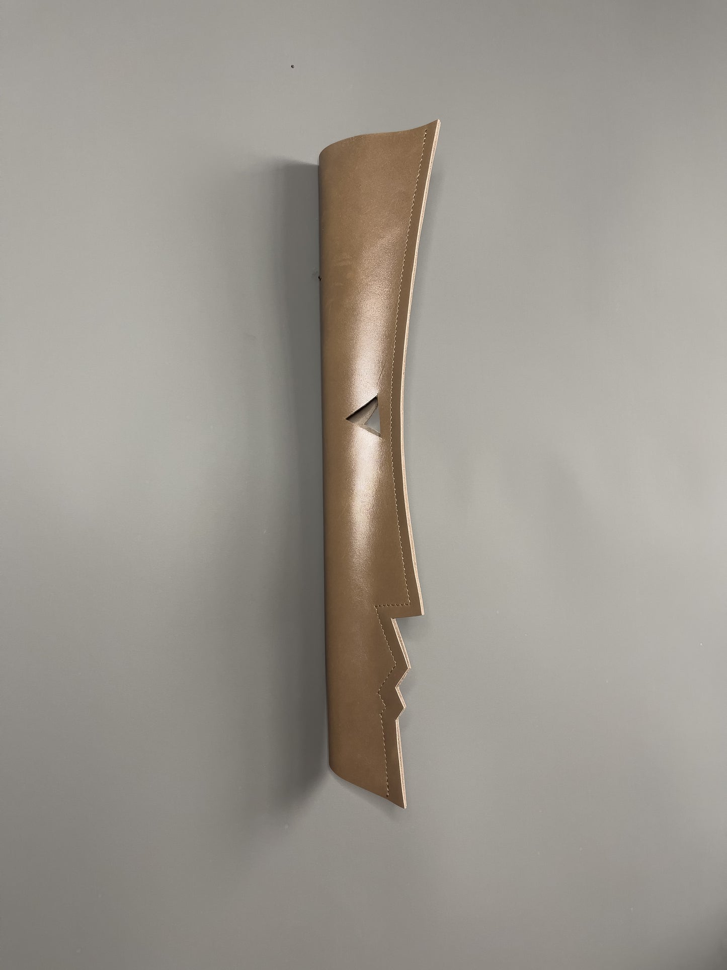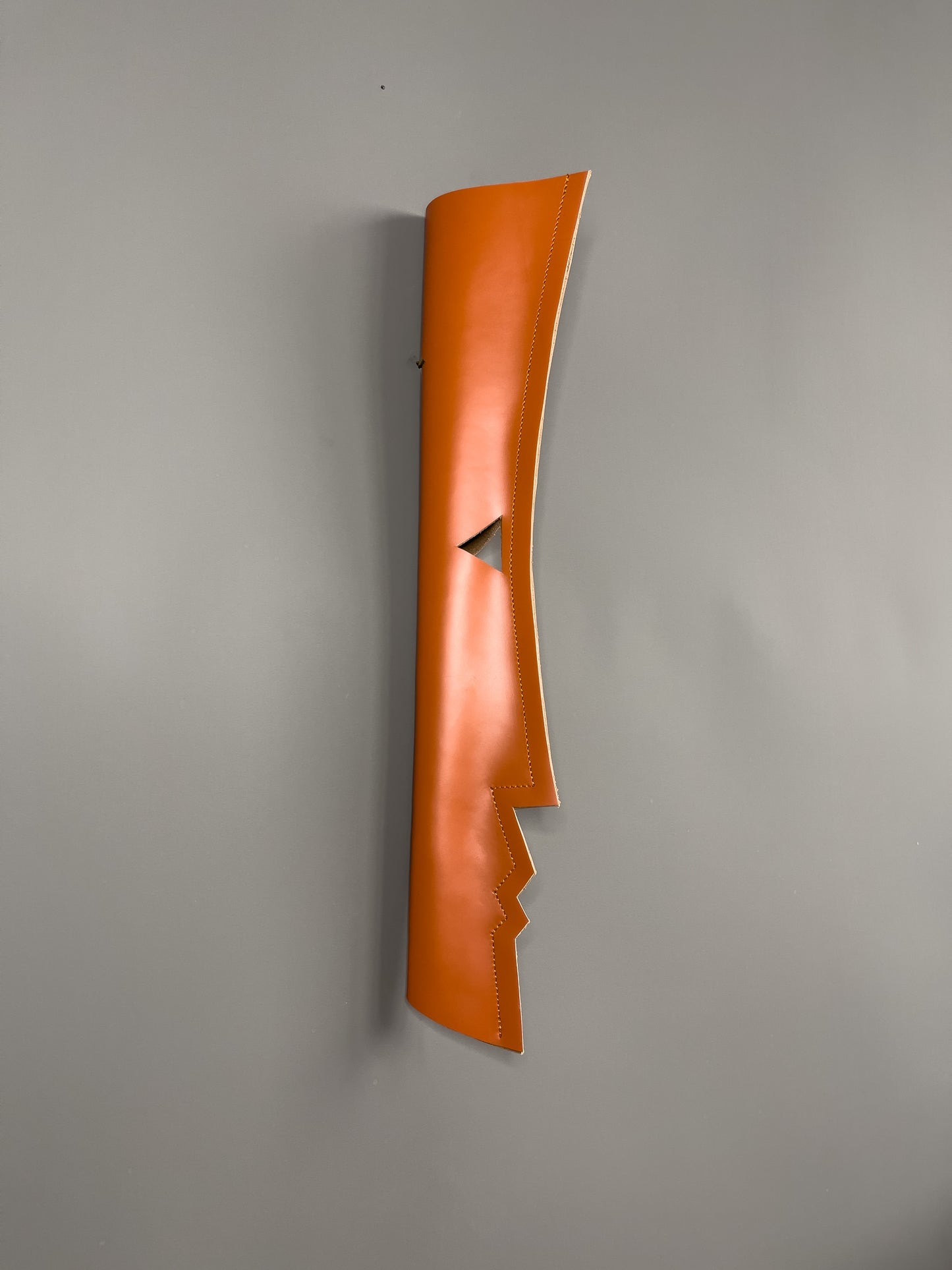 This Silhouette Mask, made from leather , reveals facial expressions through its contour. This Mask was inspired by the face masks Dirk created during the pandemic. With a background in shoe and bag making, Dirk has applied his refined techniques to create this piece.
