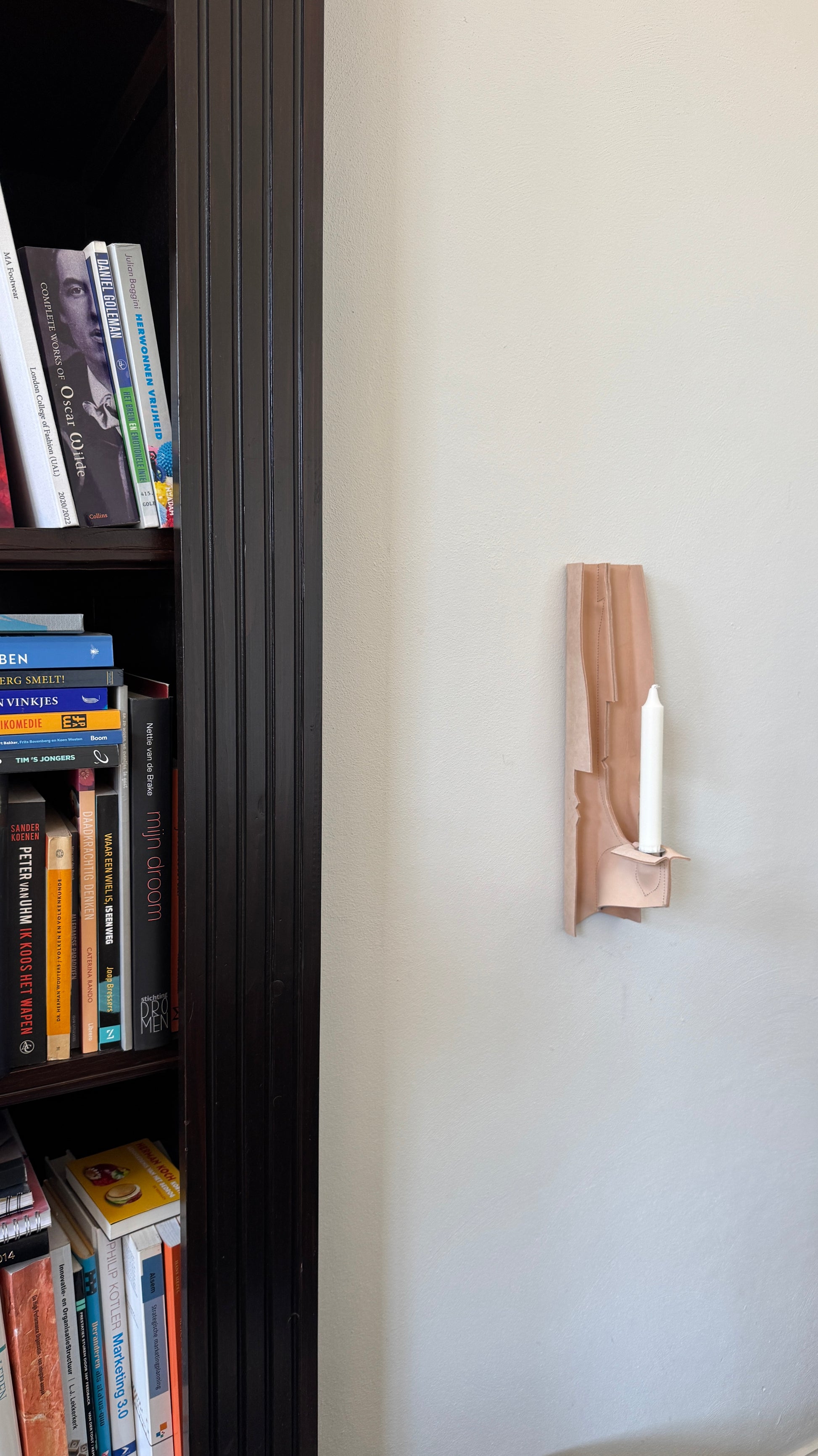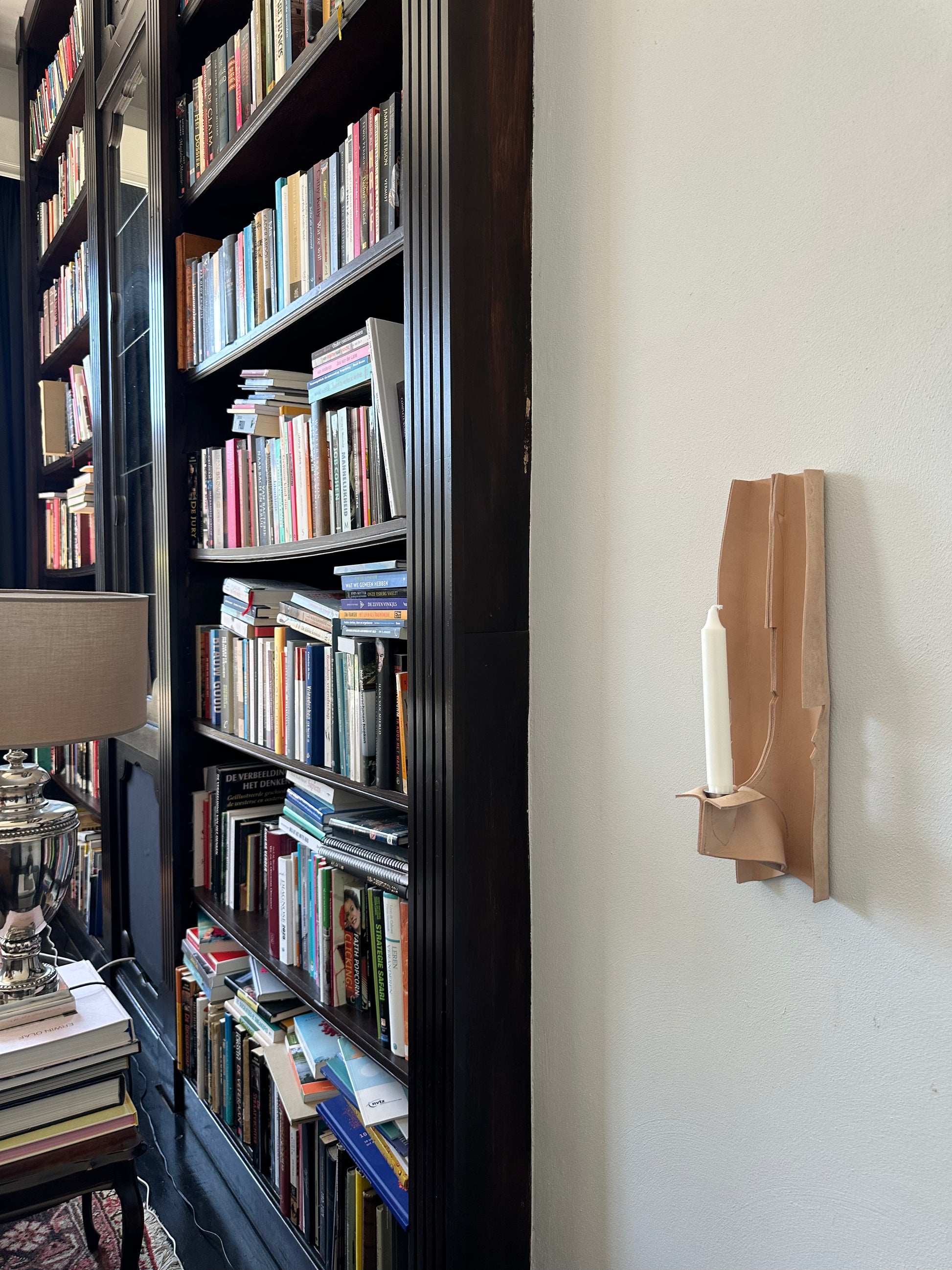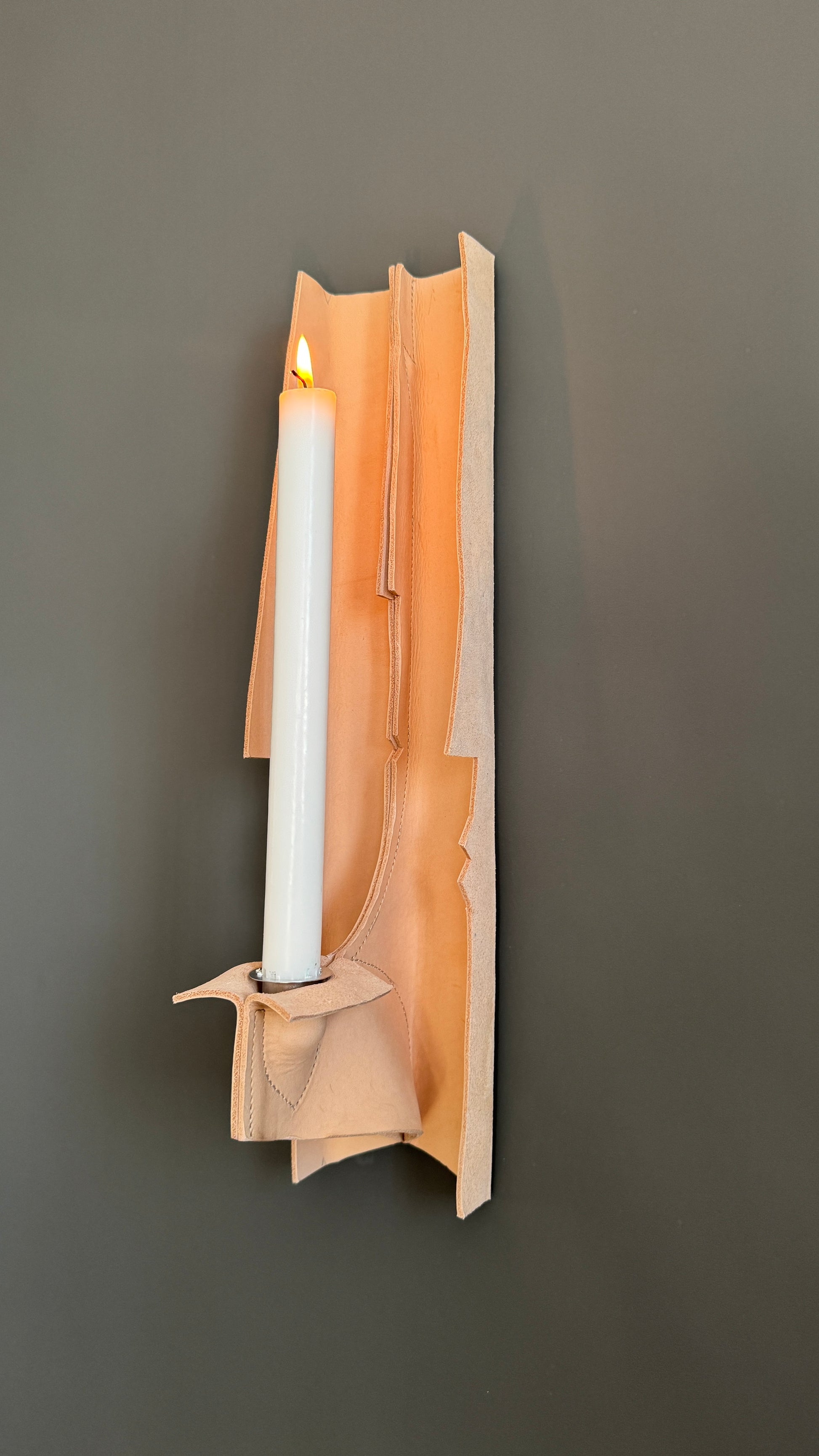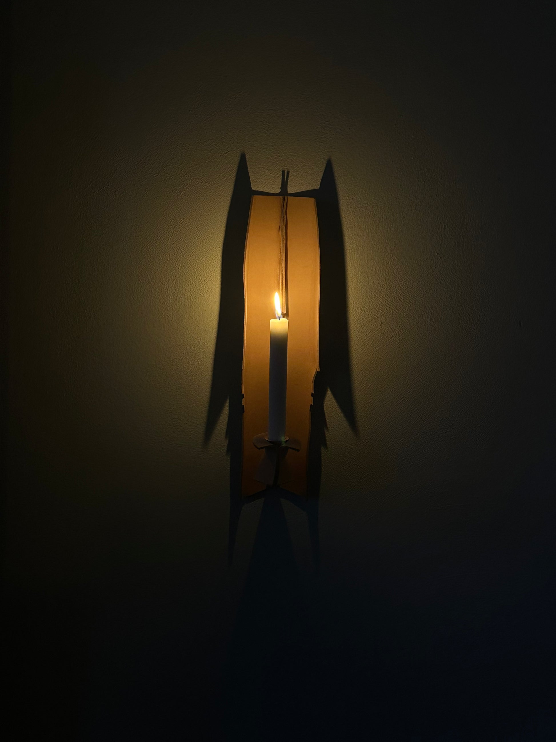 As evening falls and the candle slowly burns down, the shadow it casts begins to shift and deepen — transforming the surrounding space with quiet movement, like a living presence on the wall.